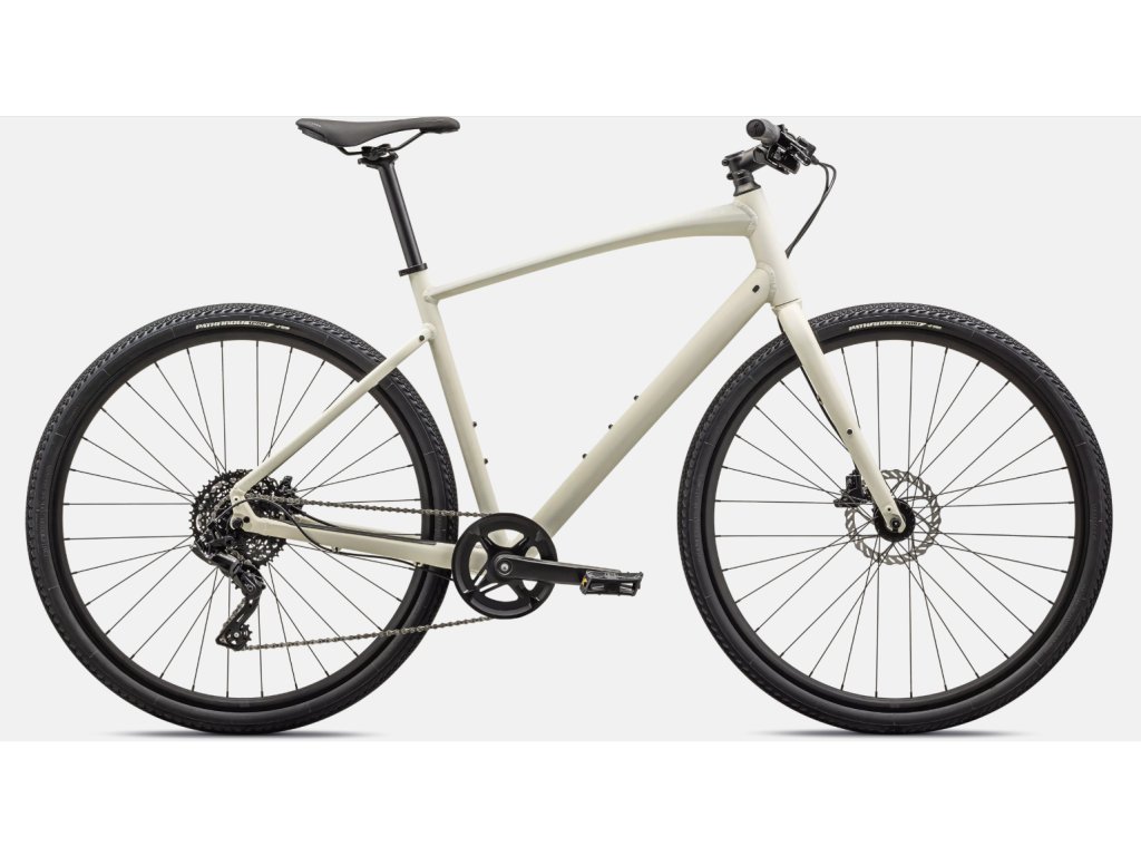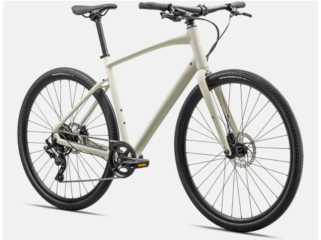 - Specialized A1 Premium Aluminum, Fitness Geometry, butted tubing, internal cable routing, flat-mount disc, quick-release, Plug + Play rack/fender mounts